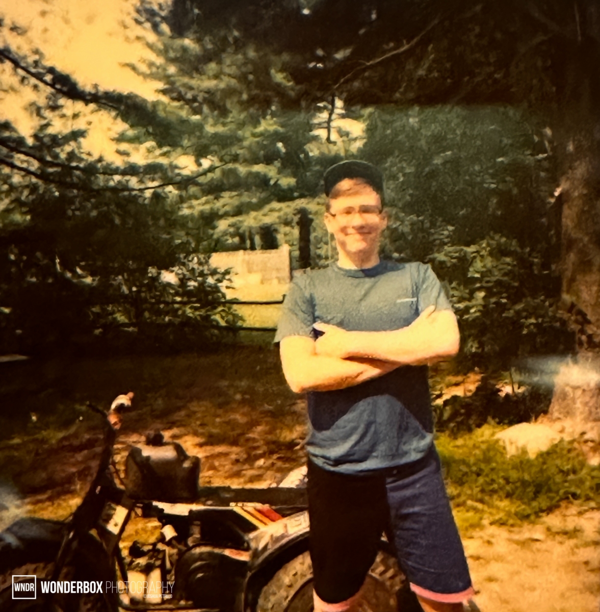 We cleared the land around the house and built trails, fences, and stone walls. It was exciting, fun and hard but such rich memories I have of those days. I remember one time we were riding up and down the main trail that went over the wetlands and up to the top of a huge hill which was the end of the property. We would come down off the hill and hit the wetland area where it it was mud central on the trail. I was riding behind Kenny on his 4Trax (and he was a fast and crazy driver, but Chris was even faster as his machine was more powerful) and we would lean over and grab handfuls of mud and fling them at each other. It was epic. We would play manhunt in the woods. I remember one time I almost got lost in the wetlands, and I was slogging through muck up to my knees trying to find the trail. I remember hearing Kenny calling for me and that’s how I was able to navigate back. When the pond in front was dug, I remember that it was super deep. It was still spring time, but we built a dock on one end, and Kenny decided he would be the first one to take the plunge. It was so cold! Later on, they put a huge floating “Nessie” in there just for fun.