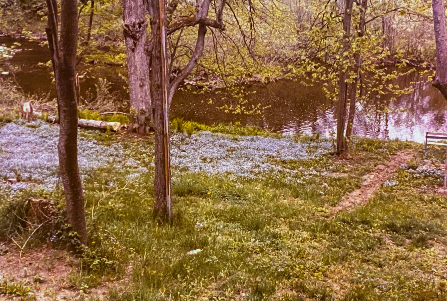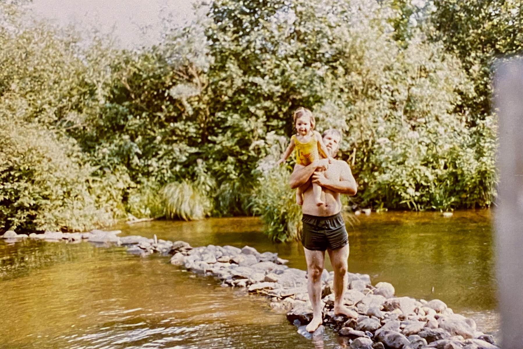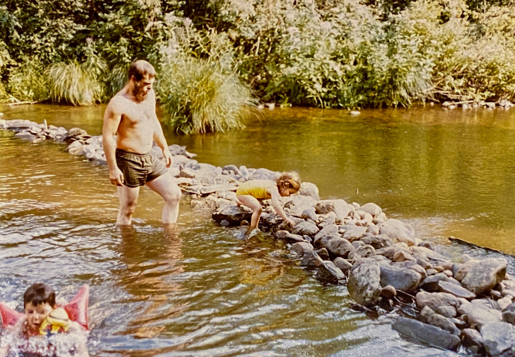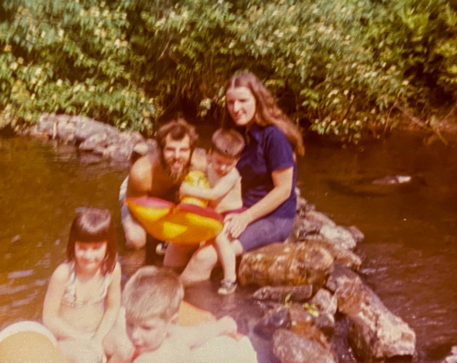 On the bank grew massive ferns and tons of beautiful blue forget-me-nots in the spring. Dad had rescued a set of concrete steps and stuck them in the bank overlooking the crick. There was a vintage blue metal and wood bench that sat there for years. Once there was a flagpole. Dad built a sweat lodge. Many conversations were had on those banks and while walking up and downstream, exploring and imagining. The crick was a constant in our lives… the sound of the running water, the sparkle of the sun glinting off the ripples, the beauty of the trees, the peace and serenity of just living on a little piece of water and experiencing all the good of growing up rural.