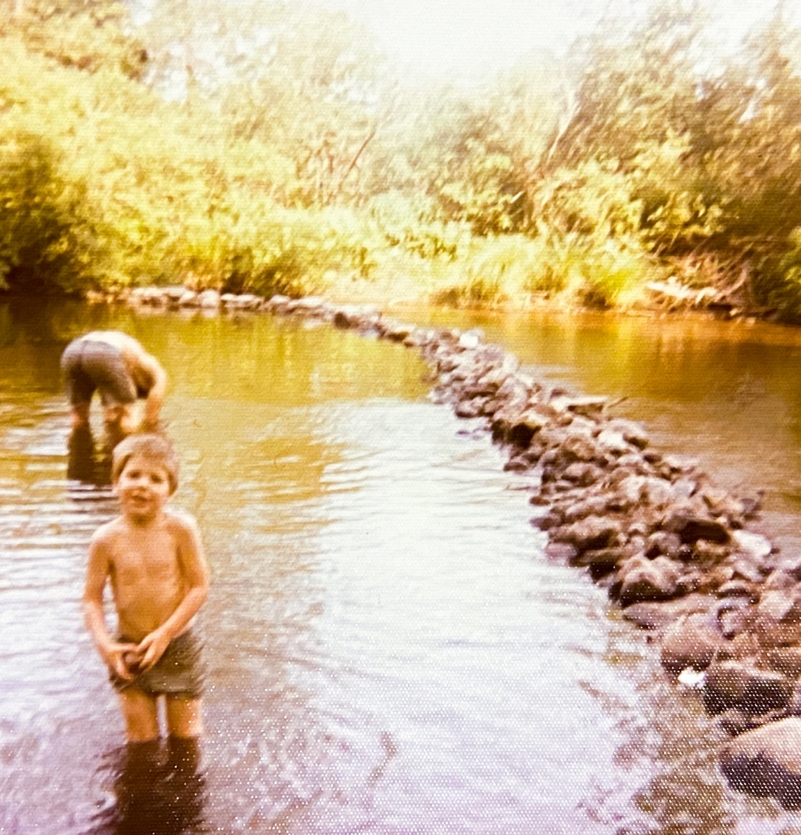 Up and down the crick were these little islands, covered in bushes, trees, and tall grass mounds, they were so fun to explore and build forts on. Our island was Gilligan’s Island, then further downstream we had Treasure Island, Hidden Island, Mystery Island, and Adventure Island. Matt and I would walk up and down the crick for hours and what seemed for miles. We had little stick huts on a couple of them, covered in the tall grasses and branches. Downstream from us there was this section where the entire floor of the crick was massive slabs of rock. We would say, “Hey, let’s go down to the slab rock.” We were pretty inventive with our names, as you can tell.